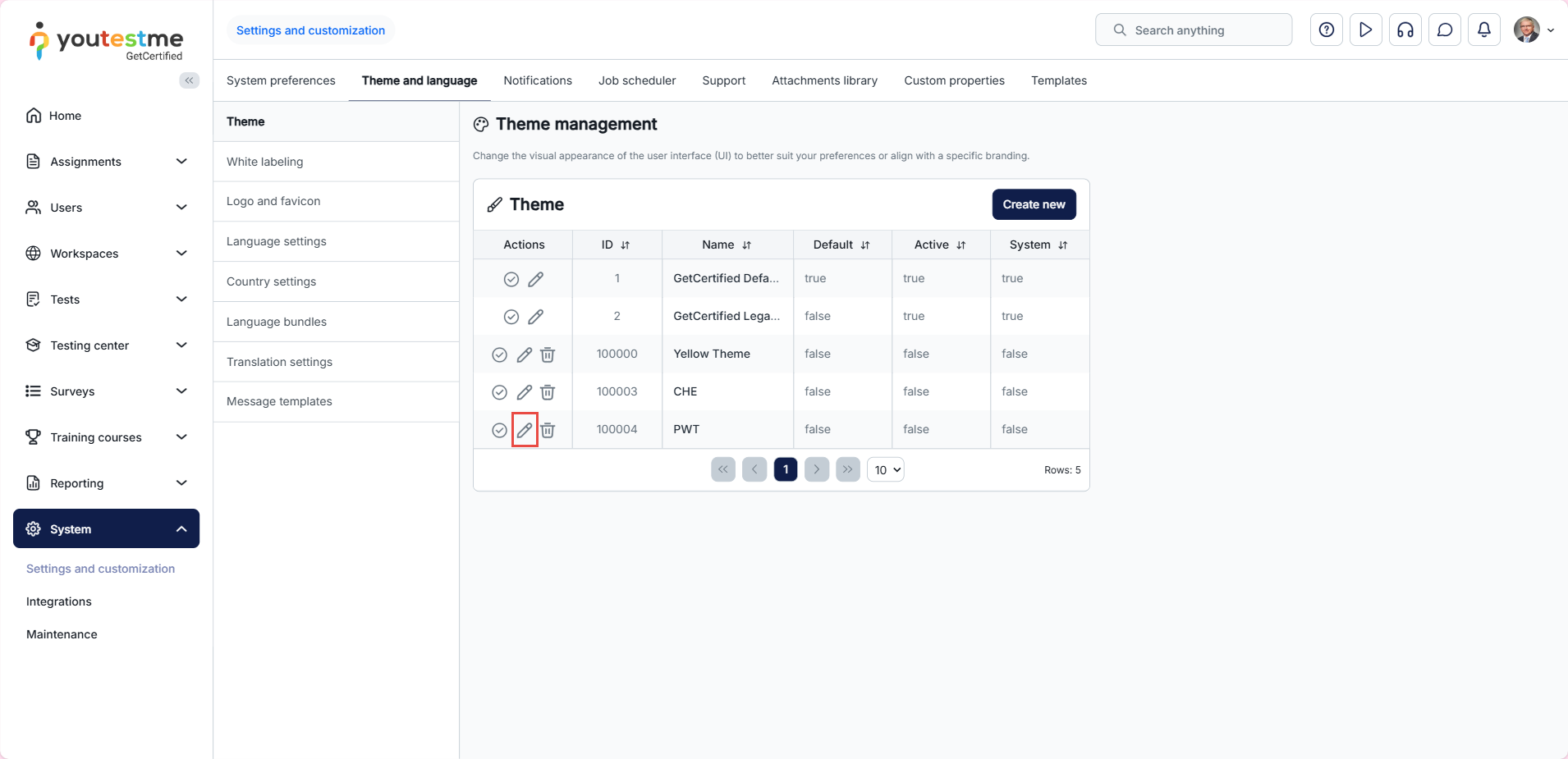 To scale font size, select the Edit option for the desired theme.