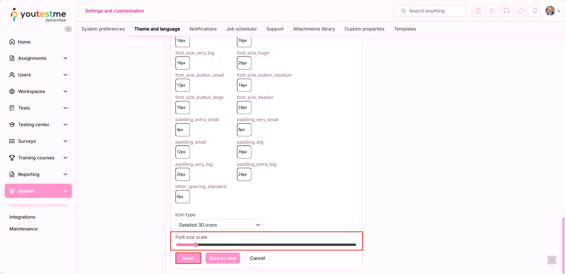 This article explains how to scale the font size for custom themes in the application, allowing administrators to adjust text readability across the user interface.