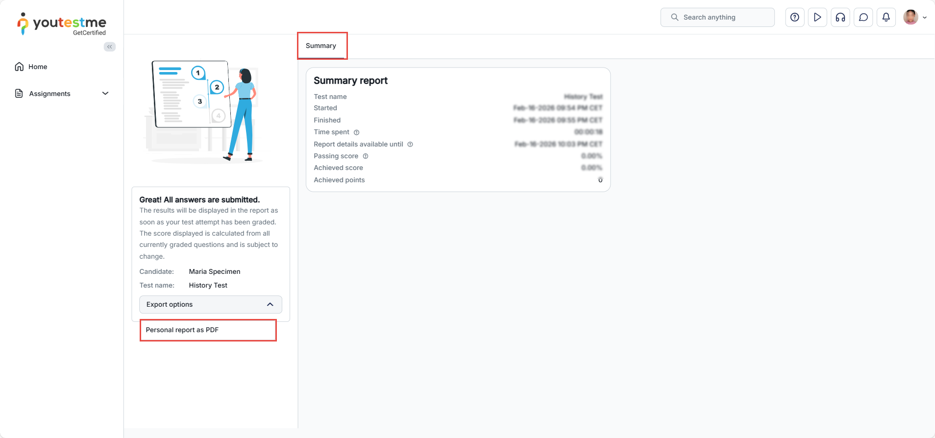 After the report lifespan expires, users will no longer be able to access the test results or download the report. Instead, they will only have access to a summary score report.