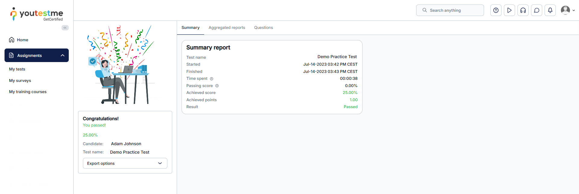 This article explains how to display a report to a candidate immediately after the test is completed, including cases where the questions require manual grading.