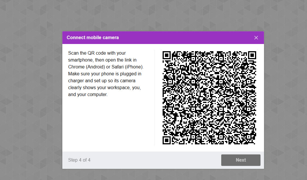 You will be required to scan your environment with a camera. Scan the code that appears on the screen to access the link where you can record your surroundings.