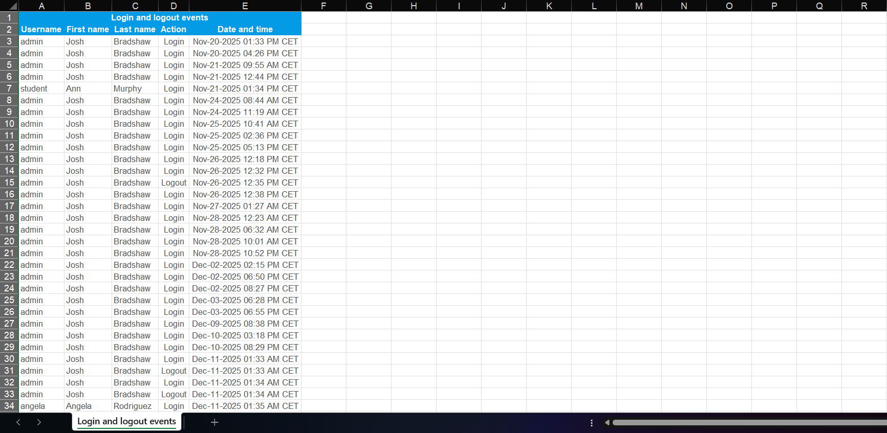 - Once the list of every login and logout activity shows up, you can:
