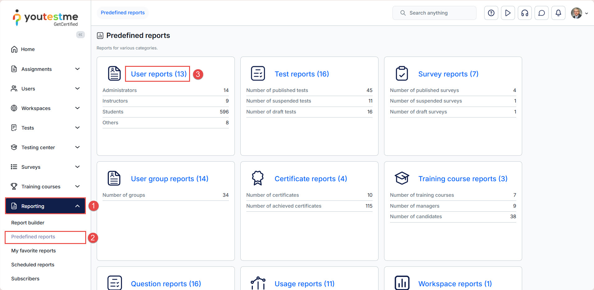 In addition to the predefined reports, administrators and other permitted users can view detailed information about any user directly from their profile. To do so: