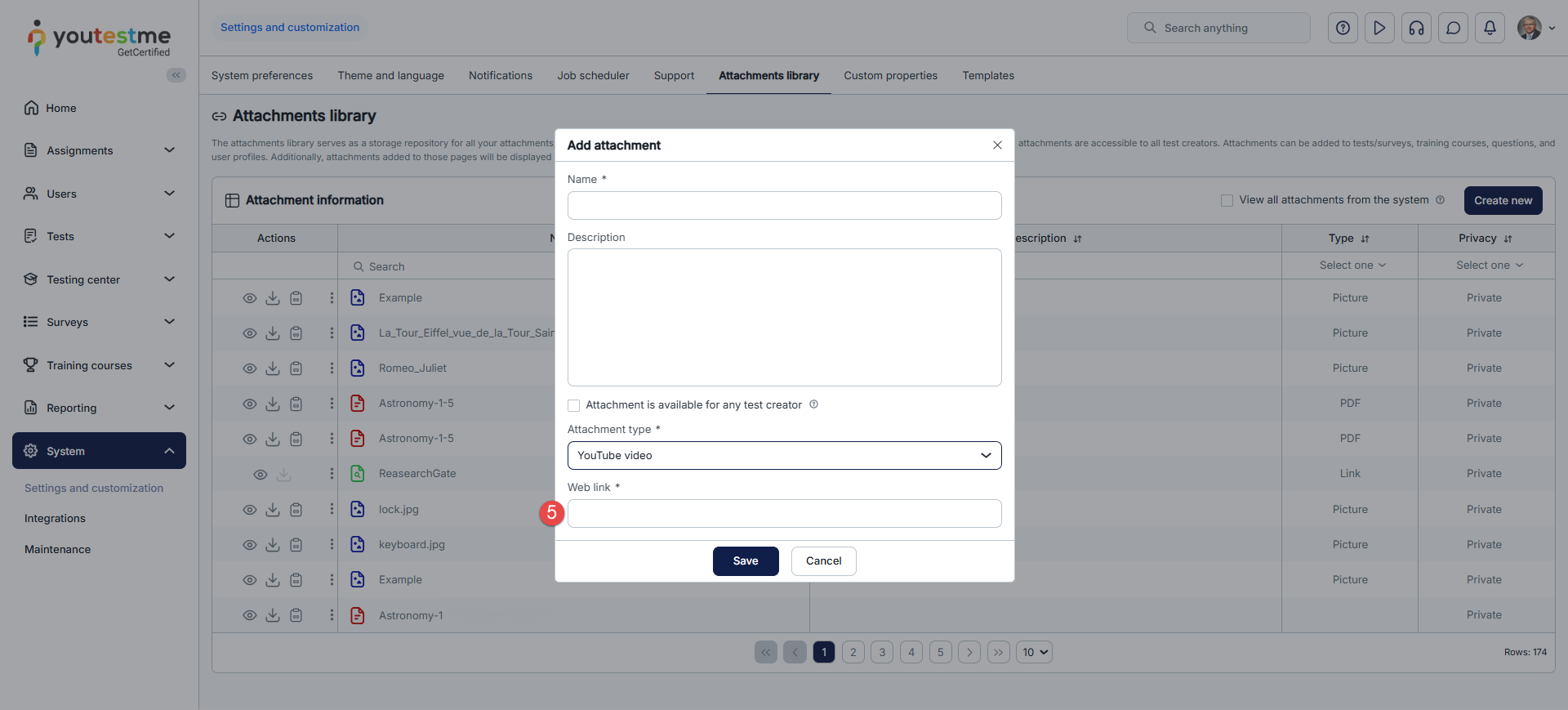 - Choose the attachment type from the dropdown menu. YouTestMe supports 10 different attachment types, including: