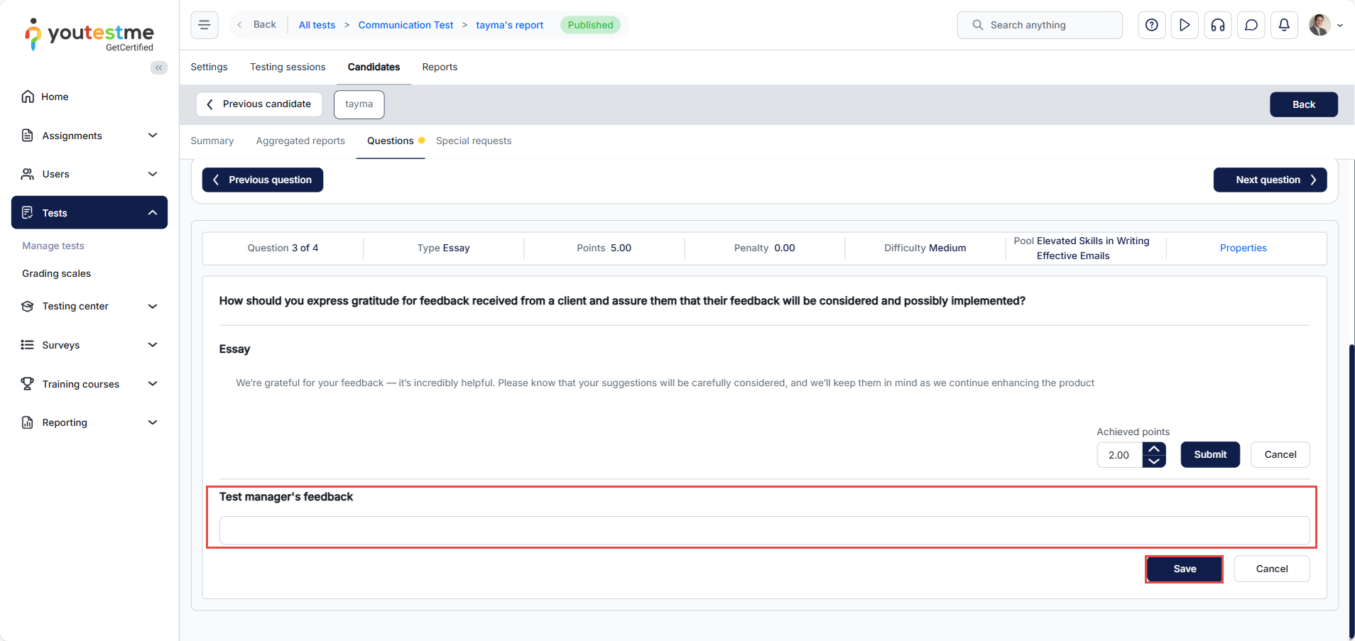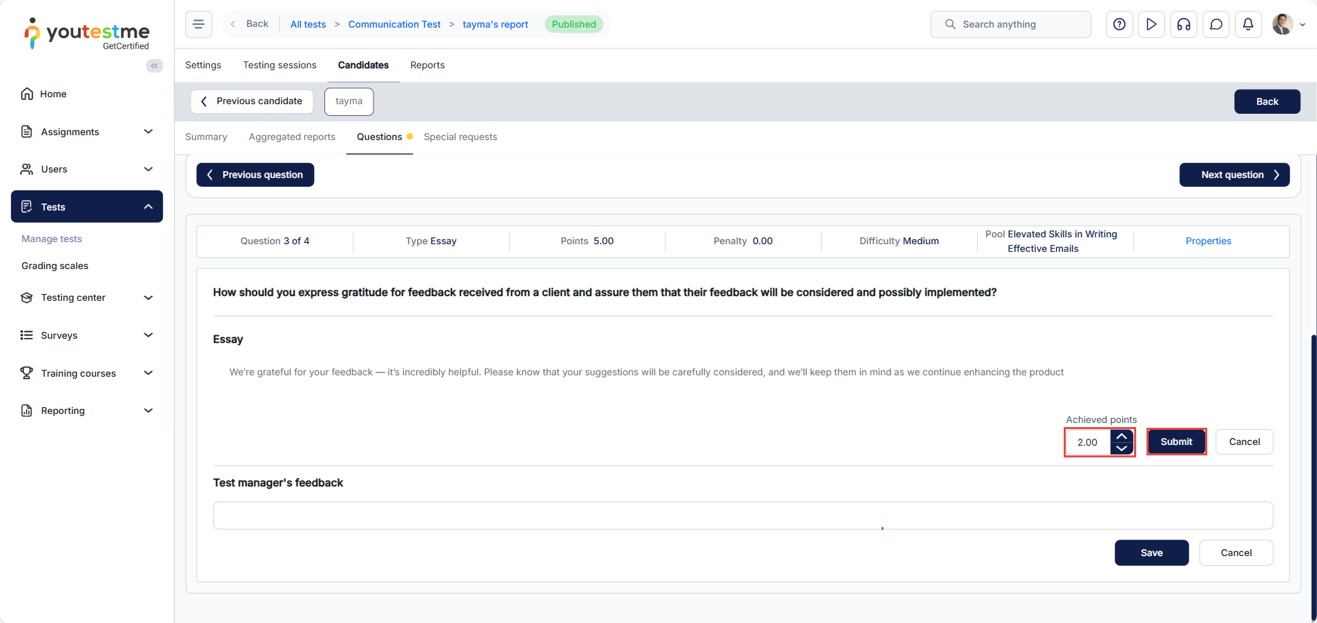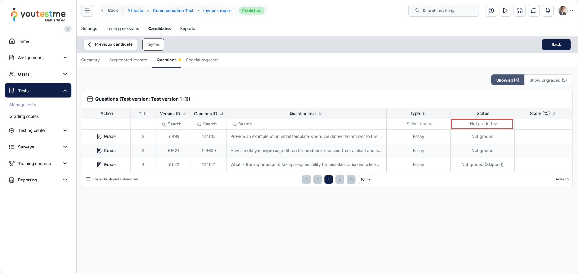 This article provides a detailed guide for users assigned the Grader security role in YouTestMe GetCertified. It explains how graders can access the tests they are responsible for, review test attempts, and leave grades and feedback while working within the permissions assigned to their role.