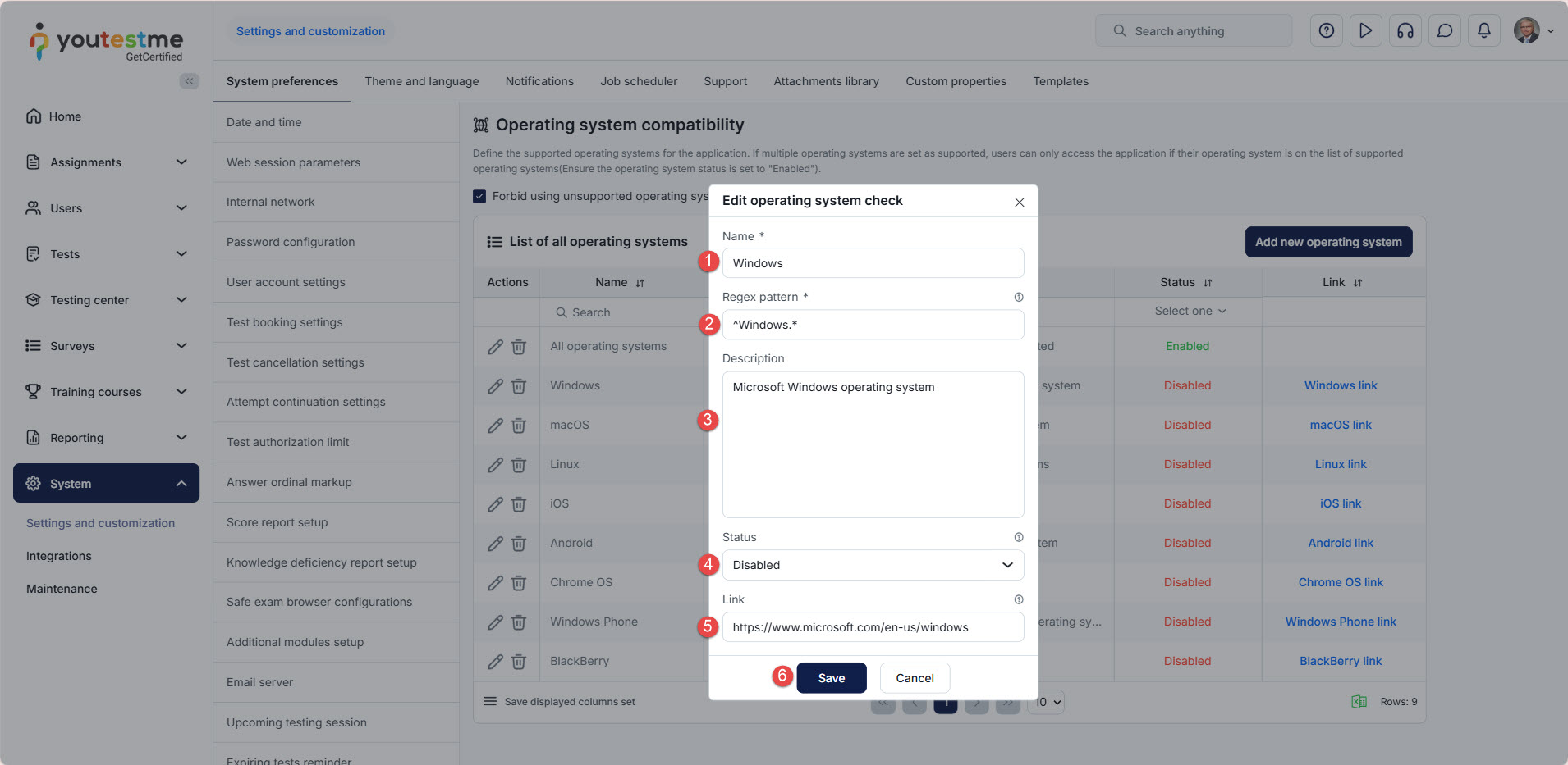 3. Edit specific operating system settings. All fields are the same as when adding a new operating system.