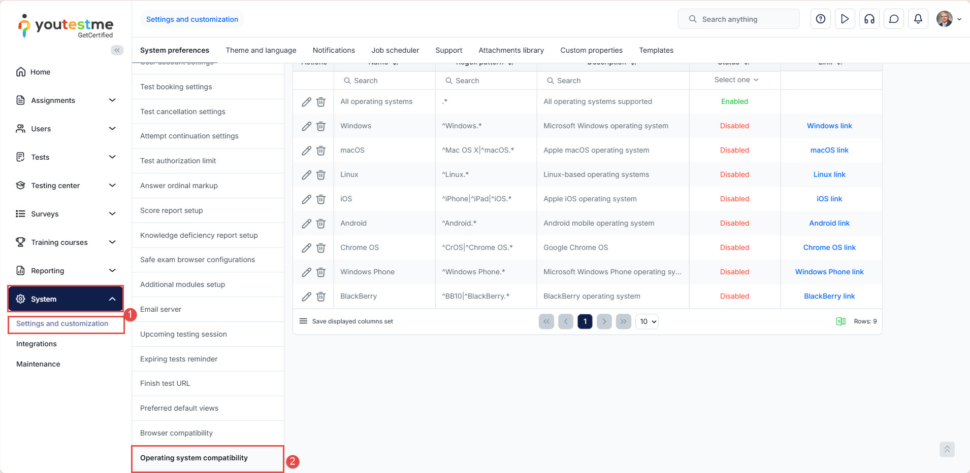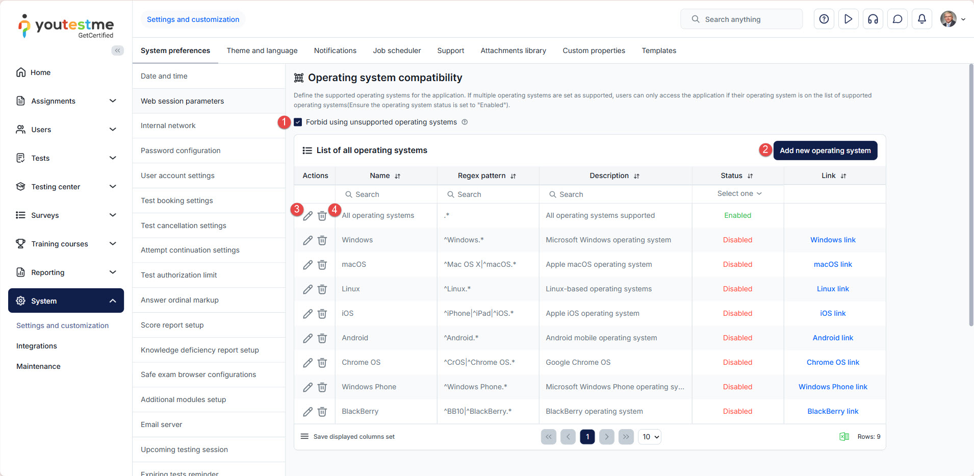 4. Delete an operating system from the list, and it will no longer be considered supported.