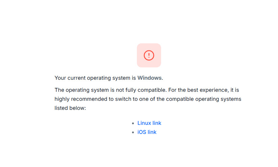 Depending on the settings, the following are examples of how the screen appears to the user when attempting to log in with an unsupported operating system.