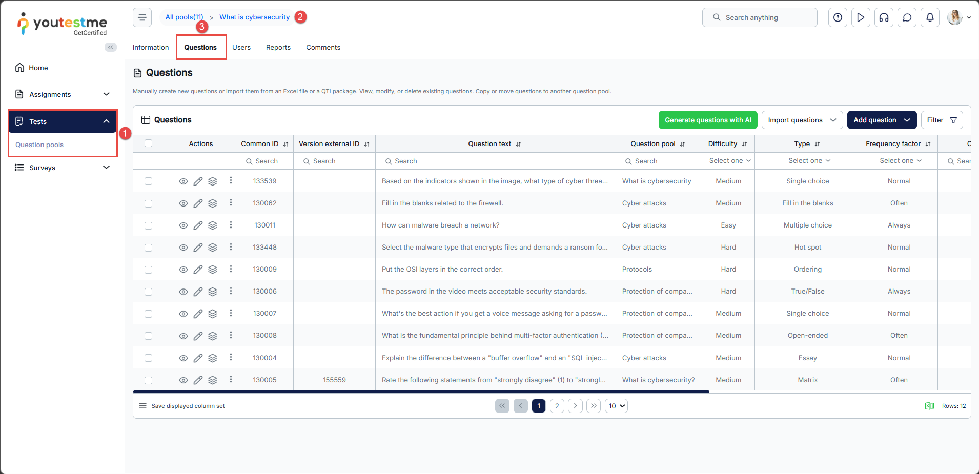 - Navigate to Tests and select Question pools.