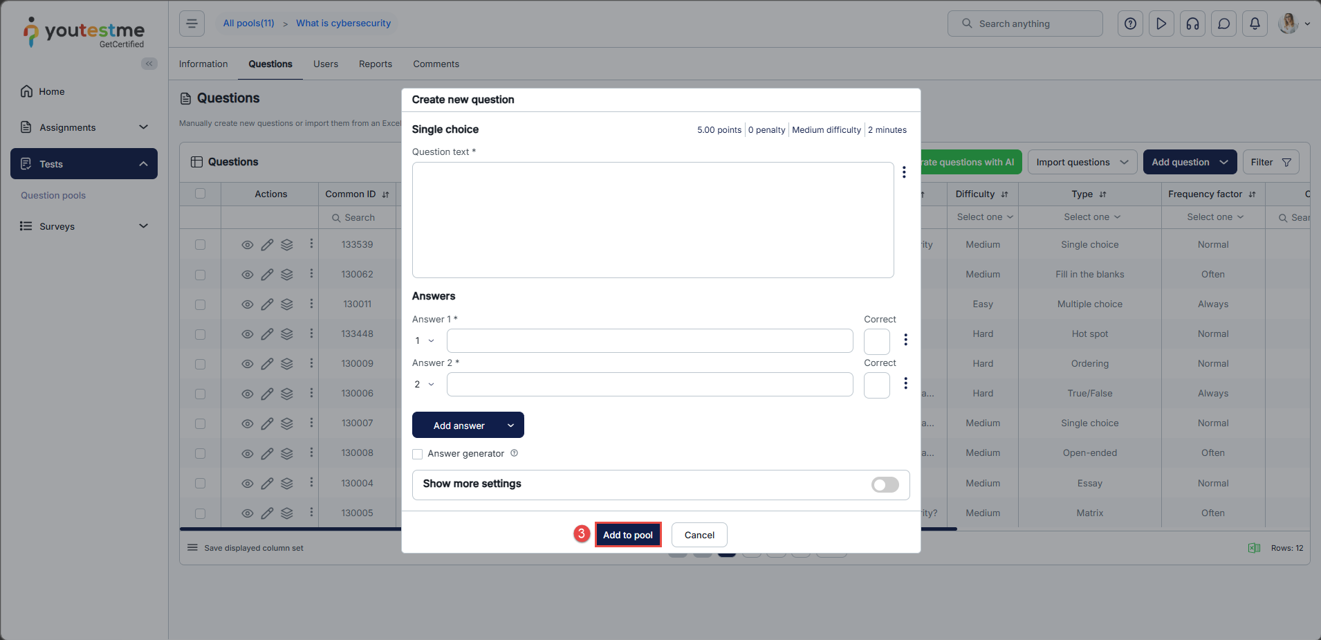 Here, you can see how to add a question within the pool. Follow these next steps: