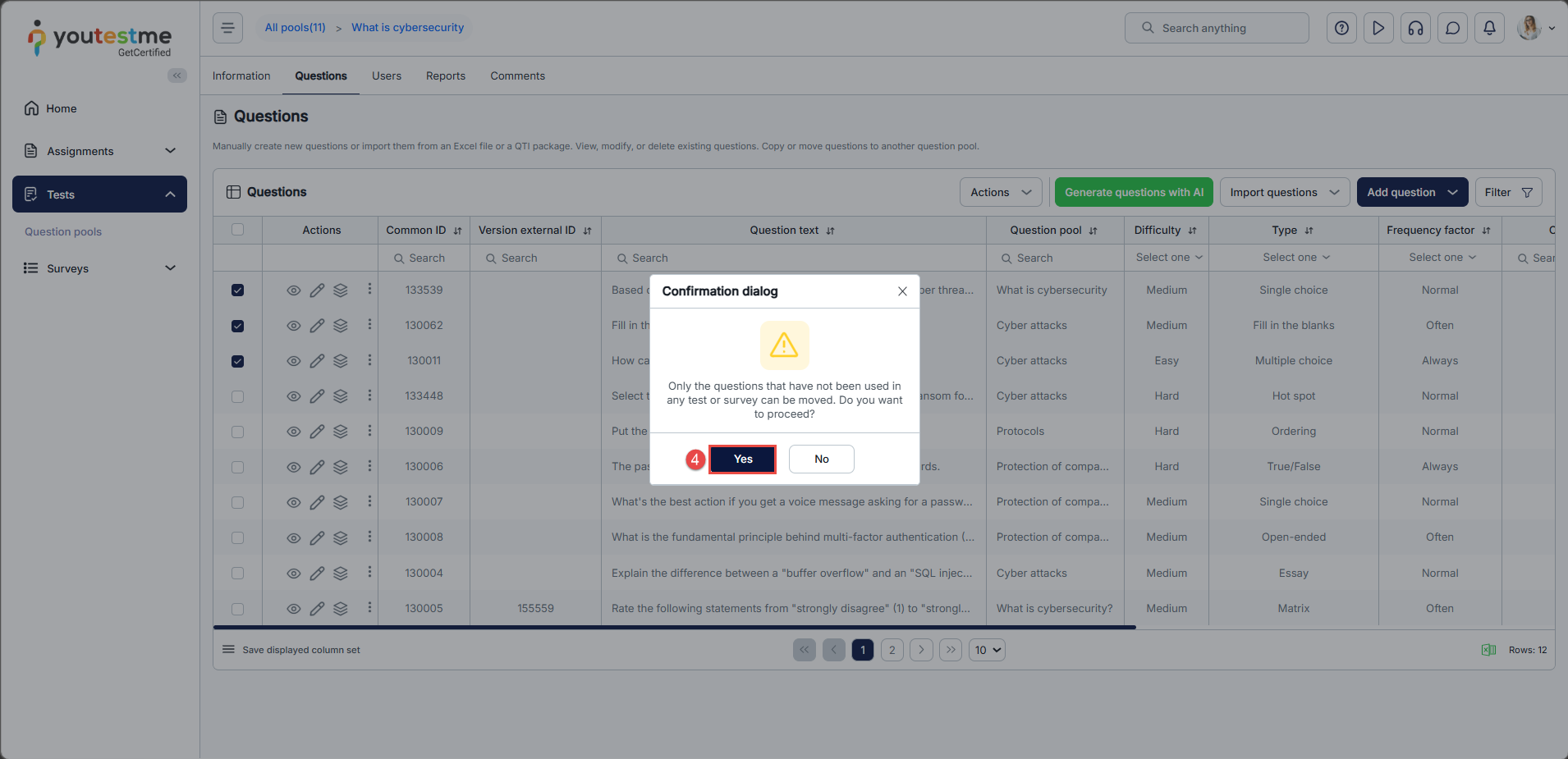 - Click the Confirm button to move the questions.