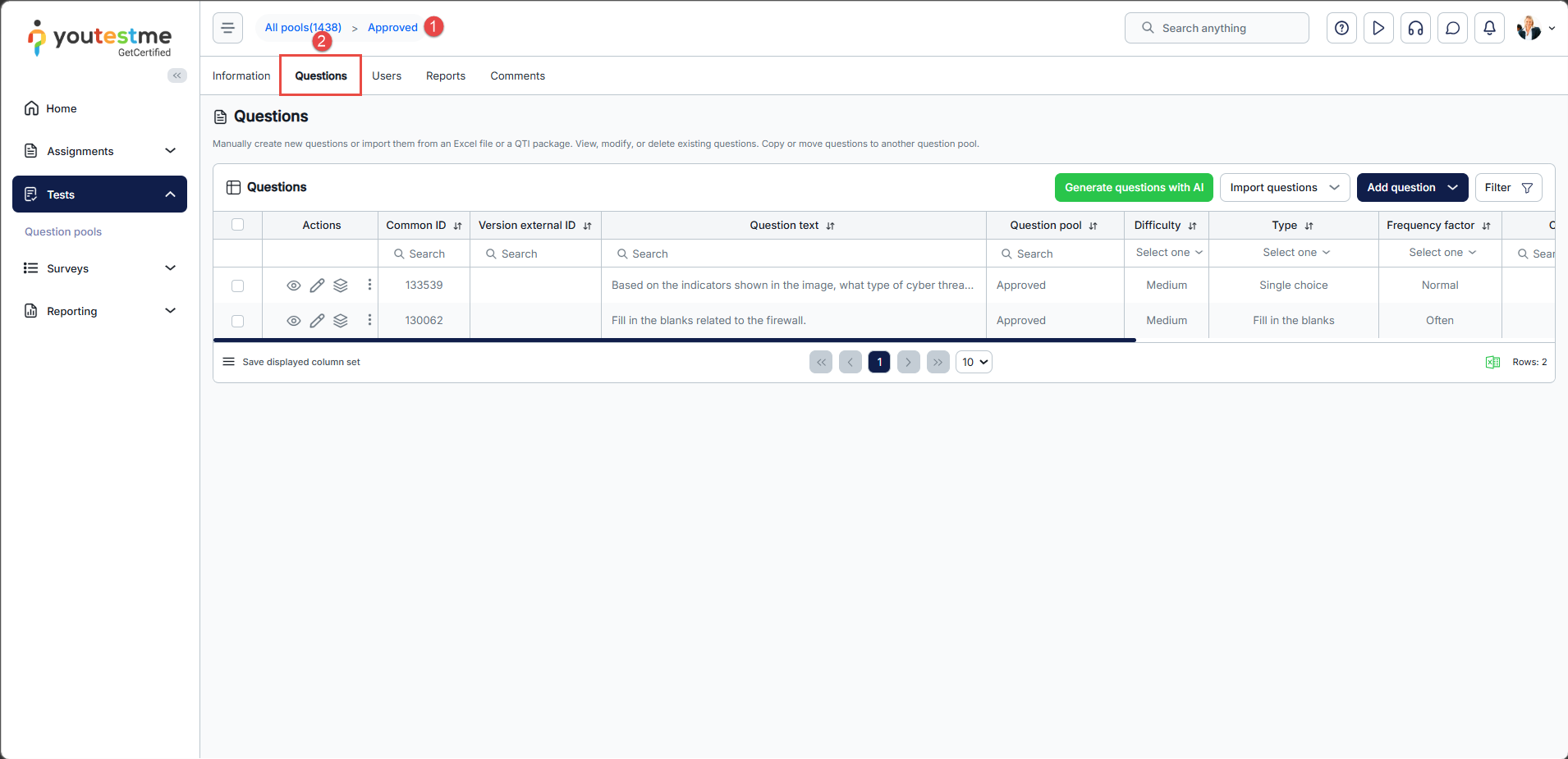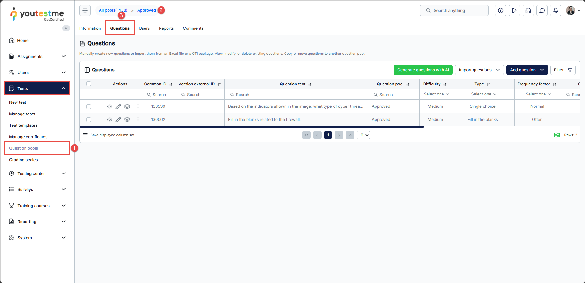 - Click the Approved question pool.