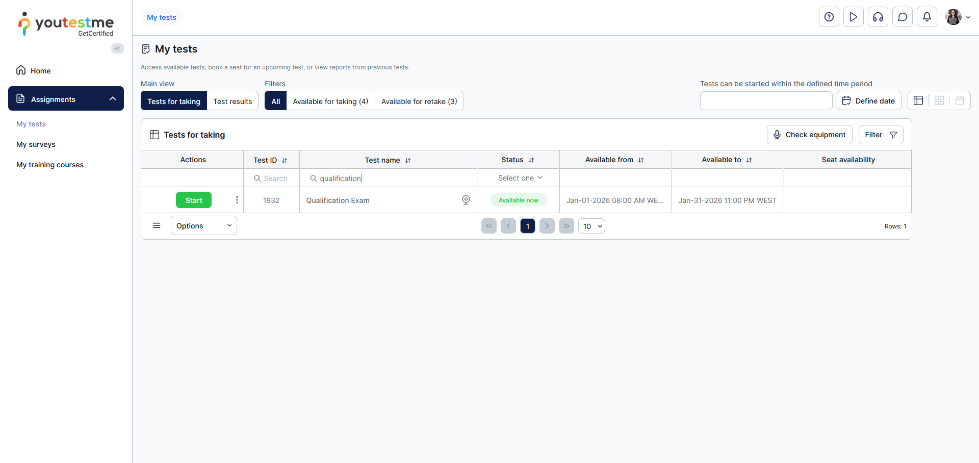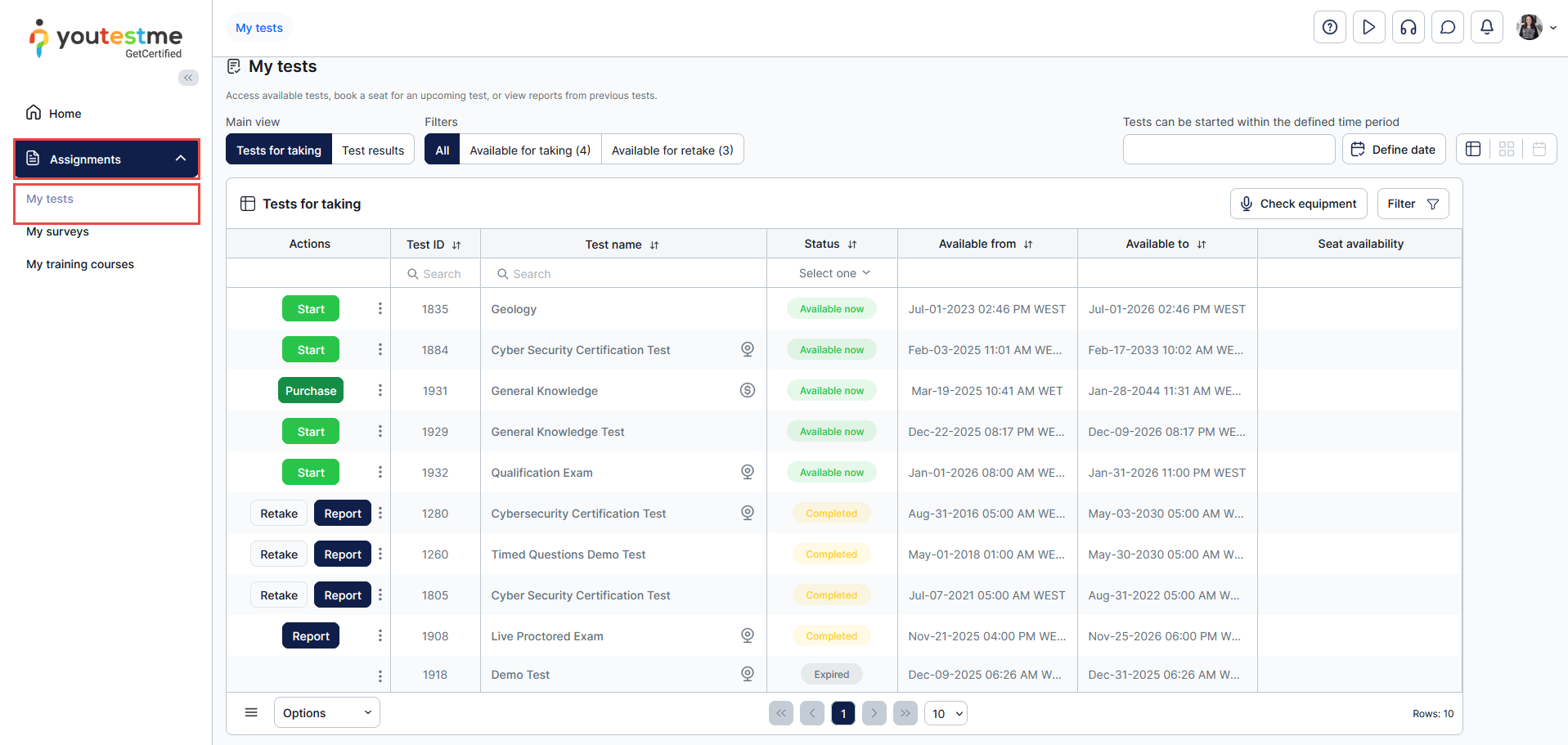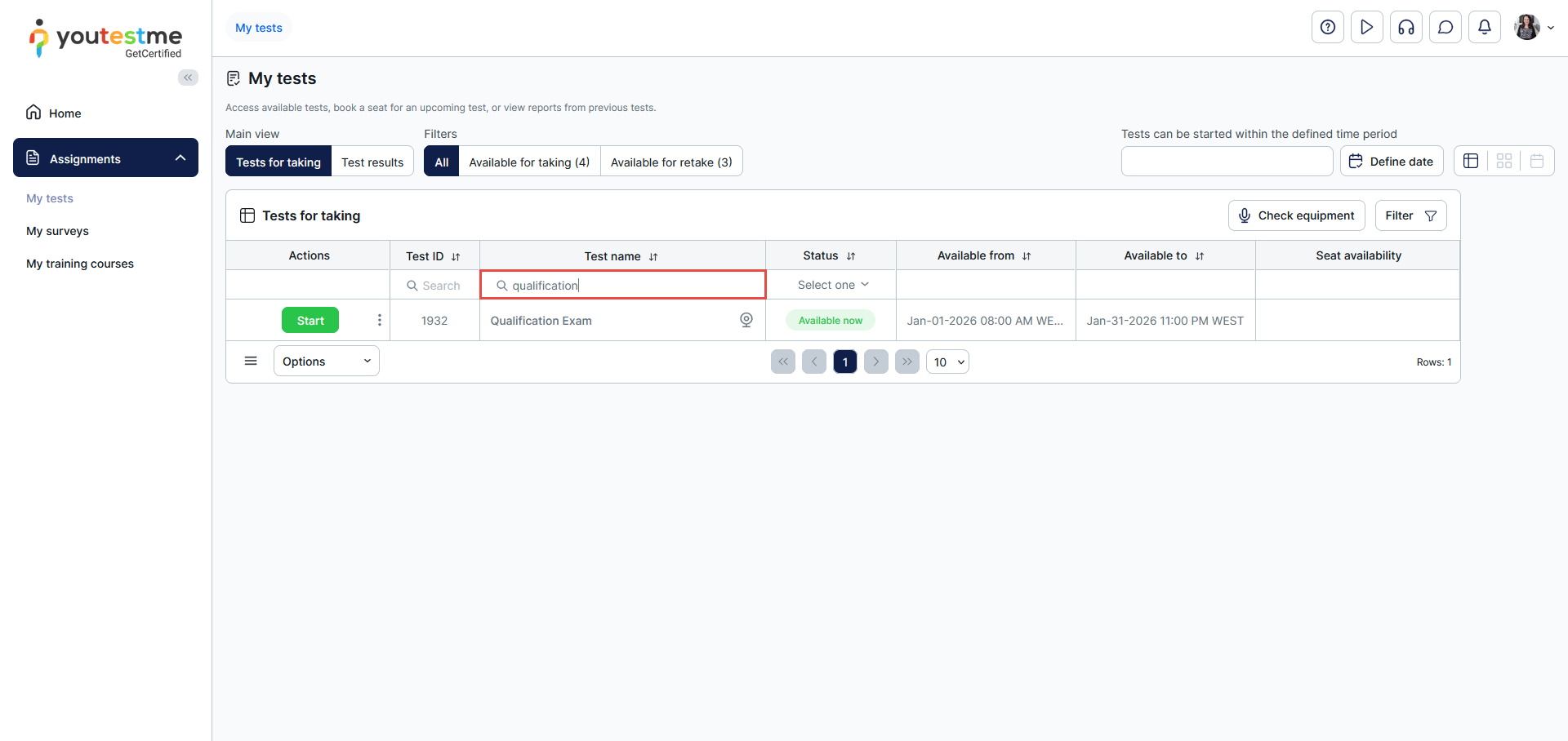 The first step is to navigate to the Assignments/My tests tab.