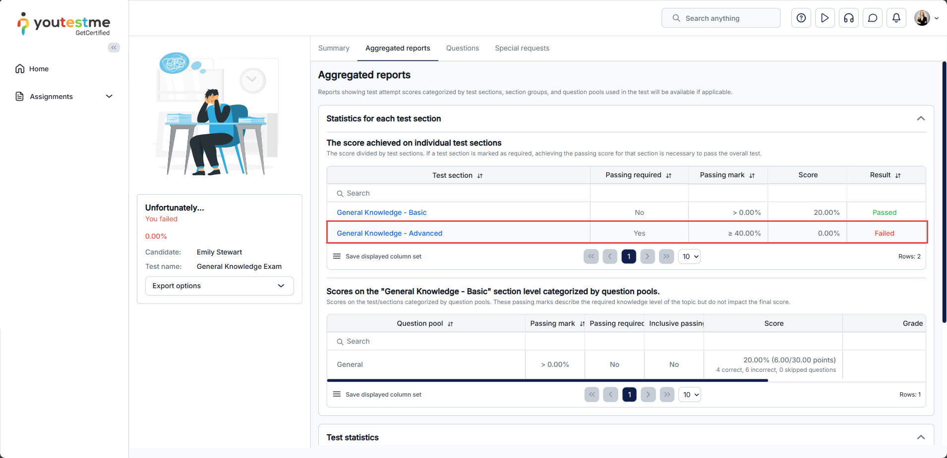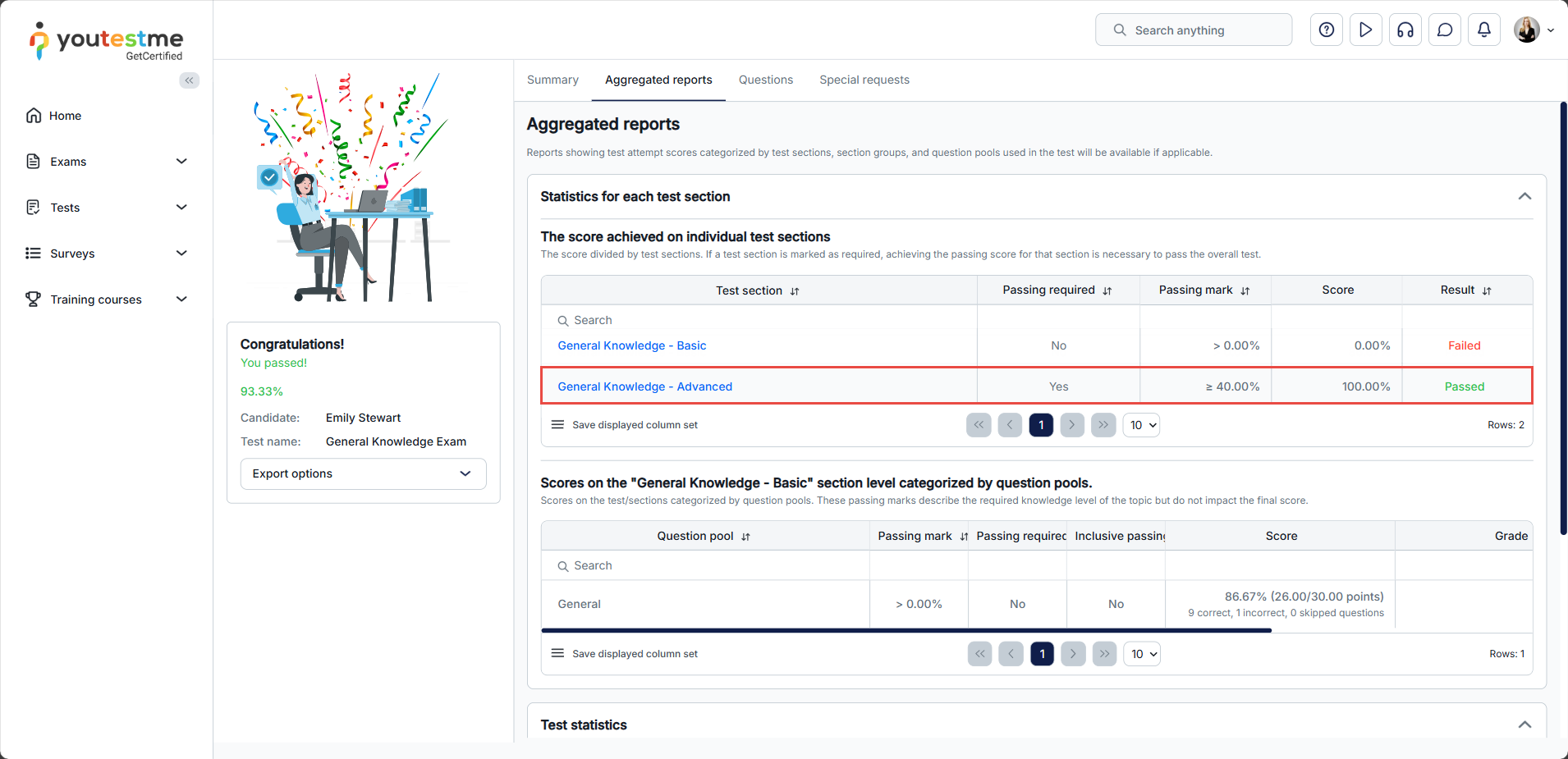 2. Selecting the Passing required option, candidates must pass the section to pass the whole test. If they don’t meet the required score in a section, they fail that part, leading to an overall test failure.