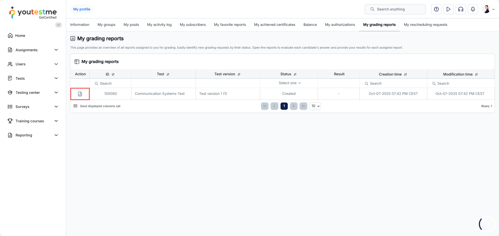 To access the candidate’s answers, the grader should click on the Report button from the Actions column.