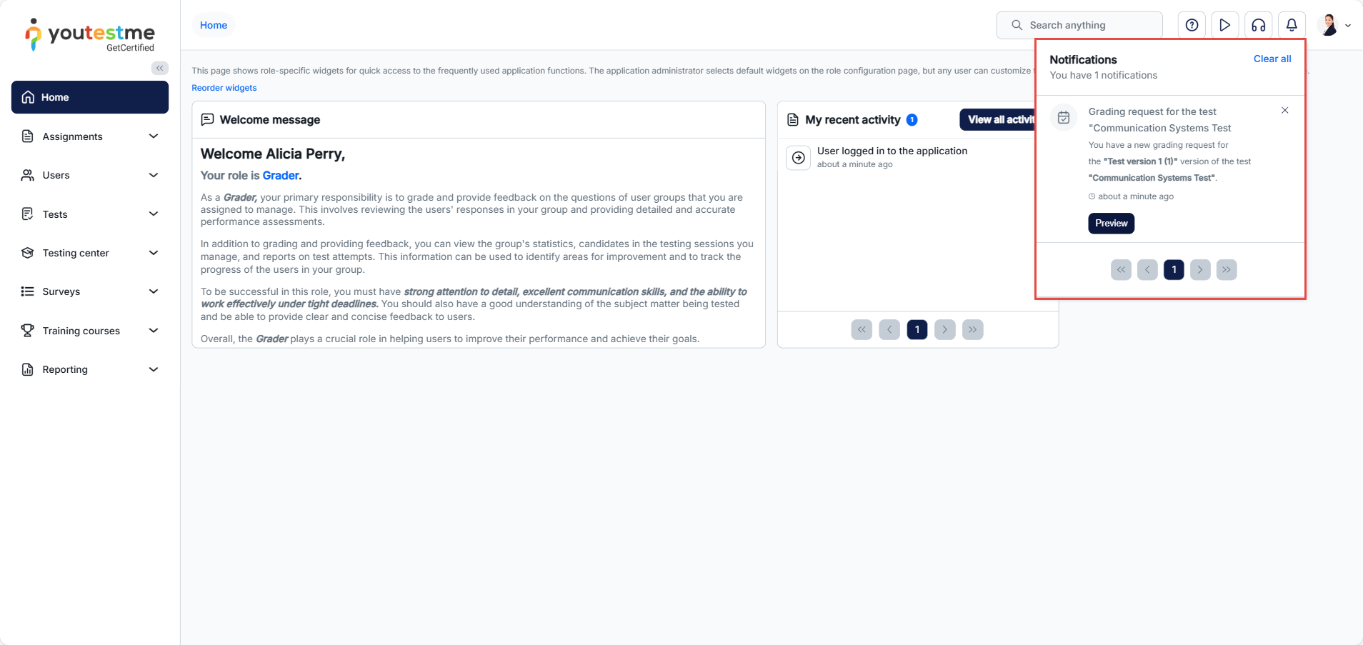 Once a candidate submits their test attempt, the required number of graders will receive a notification inviting them to grade the attempt.