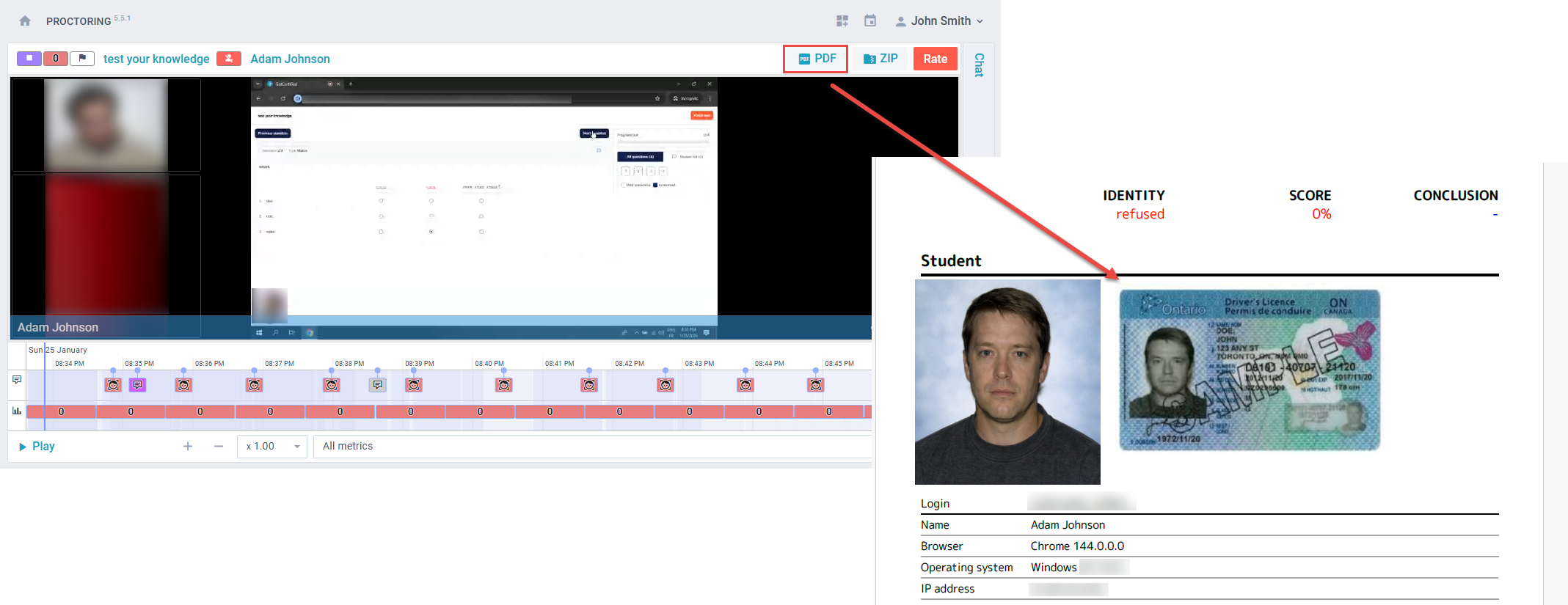 The ID picture will also be included in the attempt PDF report generated by the system.