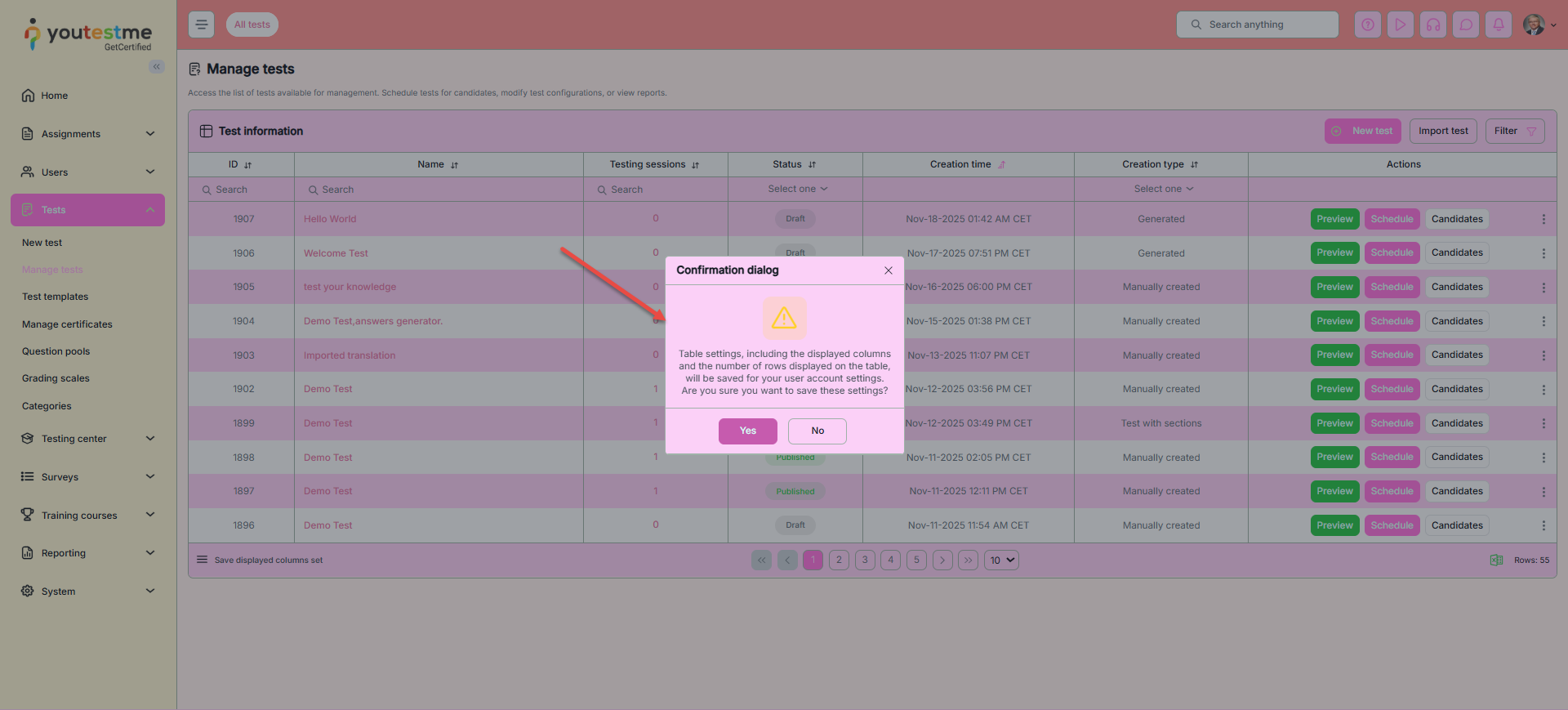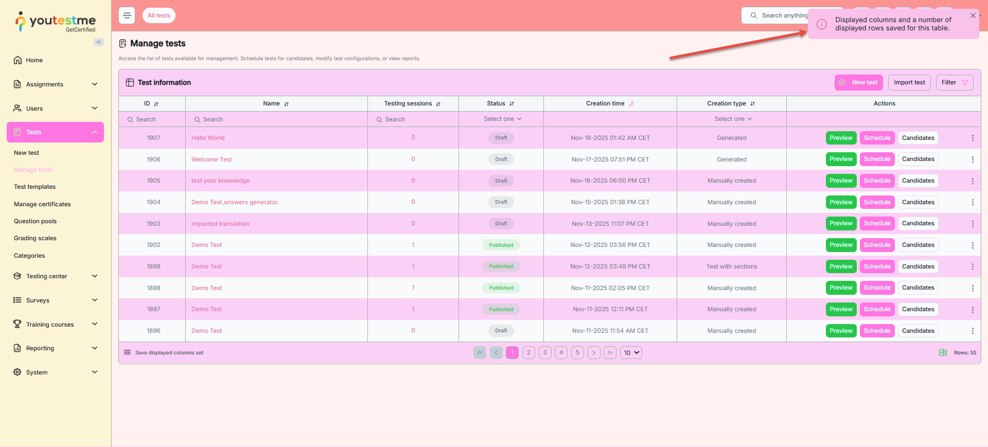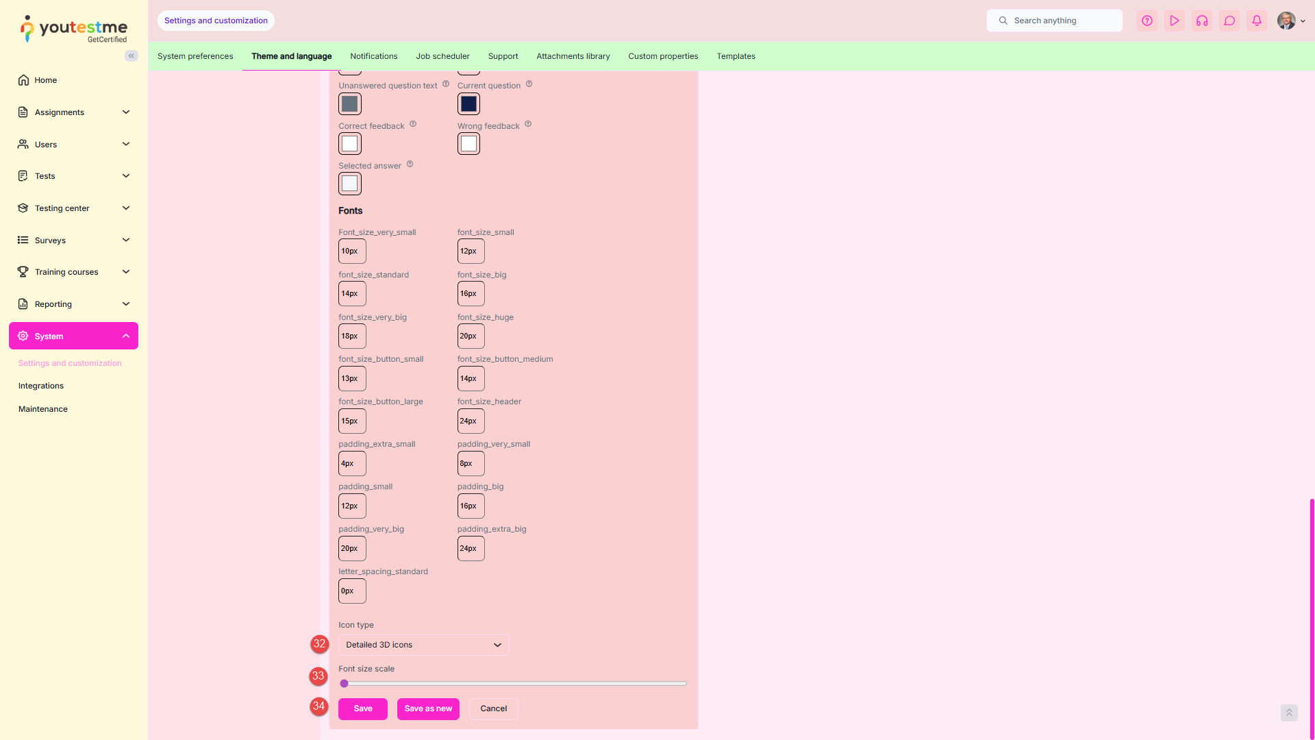 - Change success color – The color used to indicate important labels (e.g., the Passed label on tests or testing sessions that are currently available) or actions (such as the Start button on the My tests page, Test preview action, etc.).