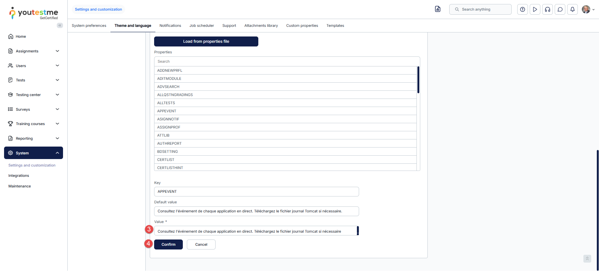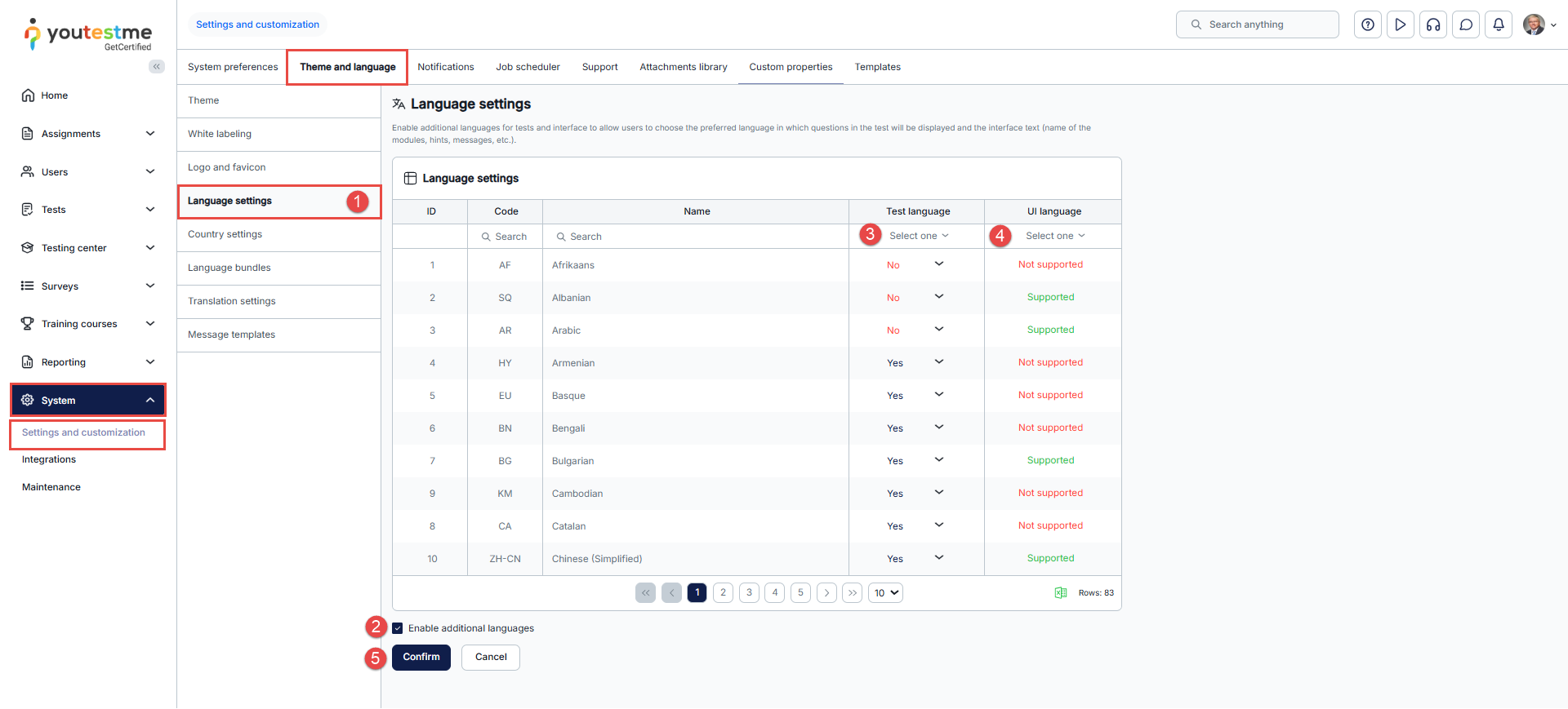 - Go to the System/System and customization/Theme and language/Language settings tab.
