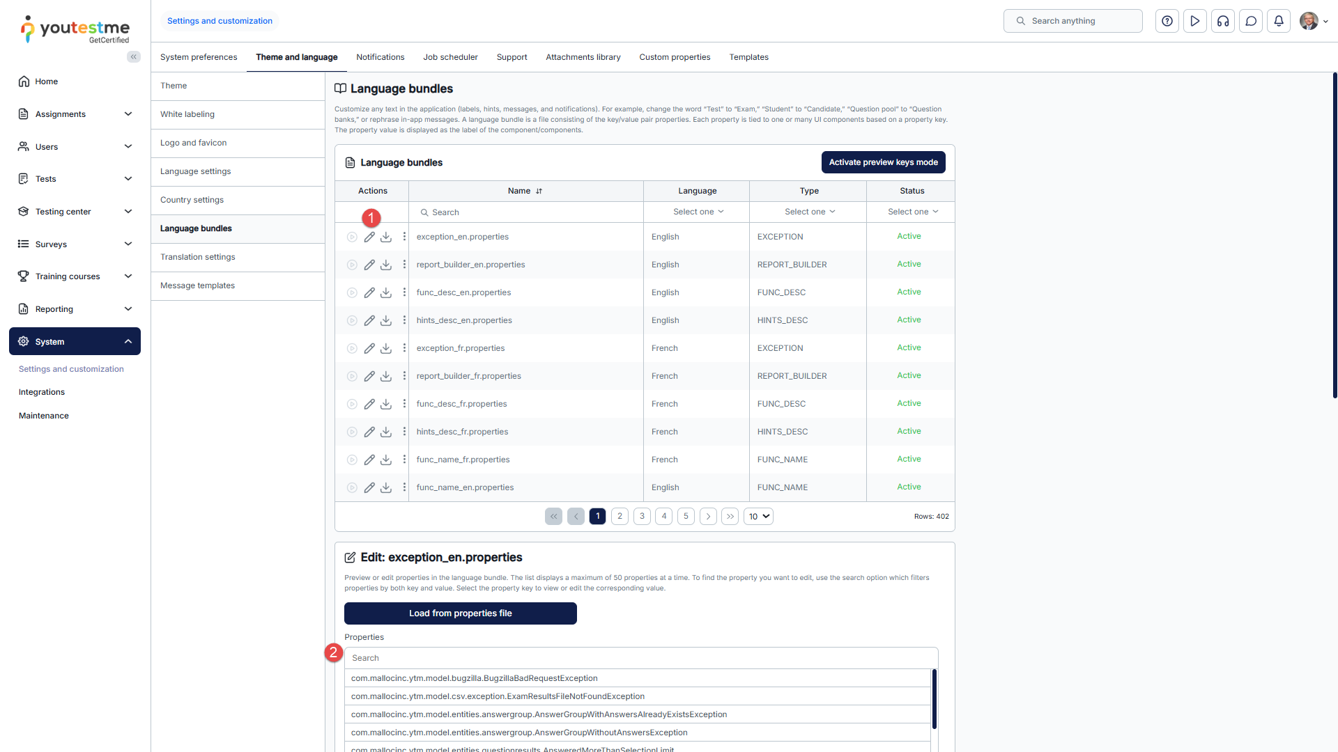 - Changing the language bundle by editing one-by-one property values.