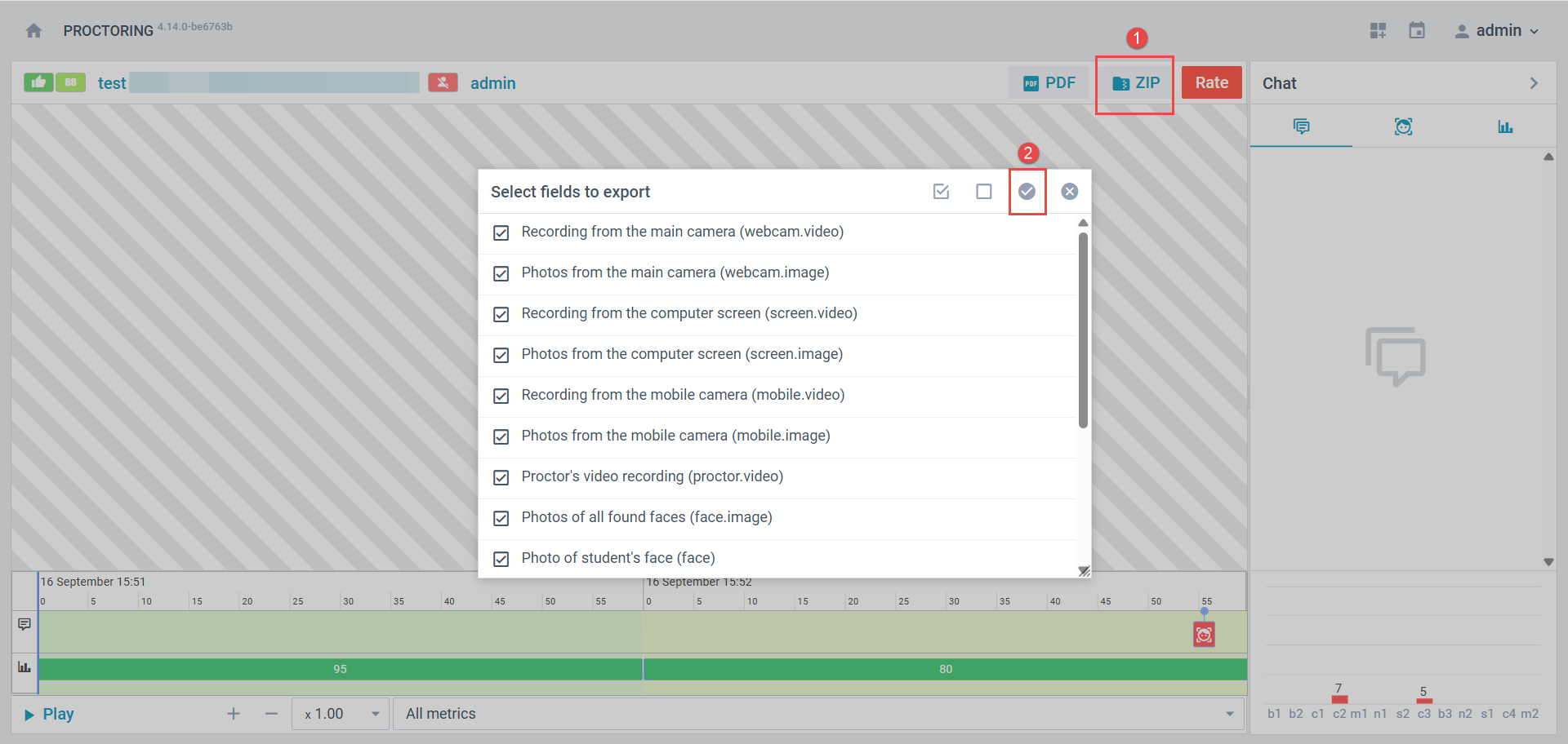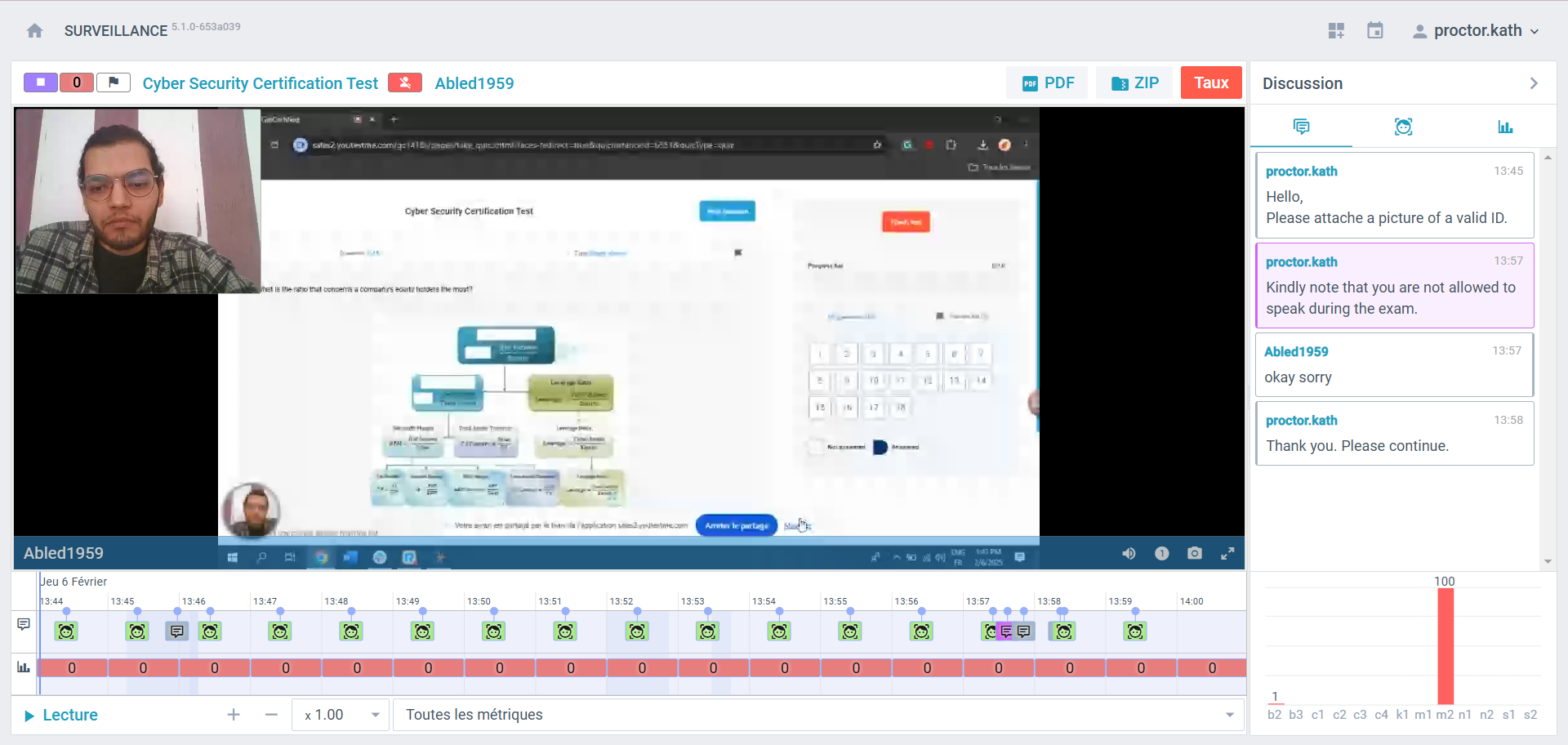 You will be redirected to the exam recording on the proctoring server, where you can review the timestamped exam events and the candidate’s interaction with the proctor.