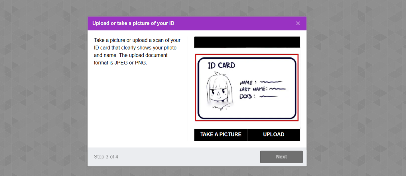 • Alternatively, you can use the Upload button to upload an ID image from your device.