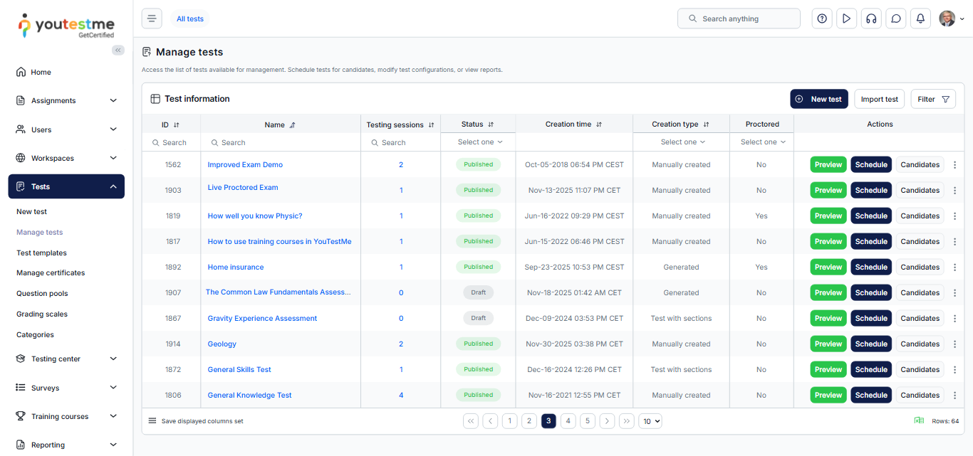 YouTestMe allows administrators to customize the welcome (landing) page displayed for each user role upon login.