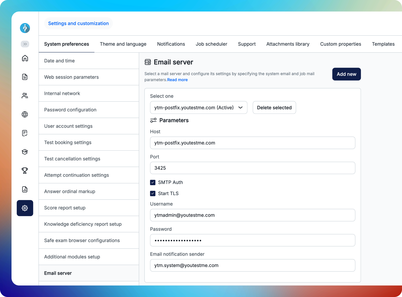 Configure system settings, adjust performance, and customize the appearance of all modules. Monitor system health, generate reports, manage deployment settings, and run security checks to keep YouTestMe stable and secure.