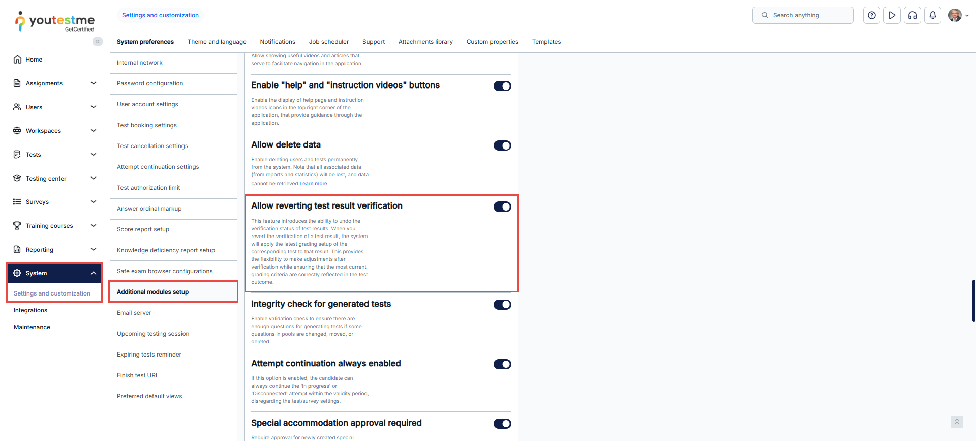 4. Scroll down and enable the “Allow reverting test result verification” option.